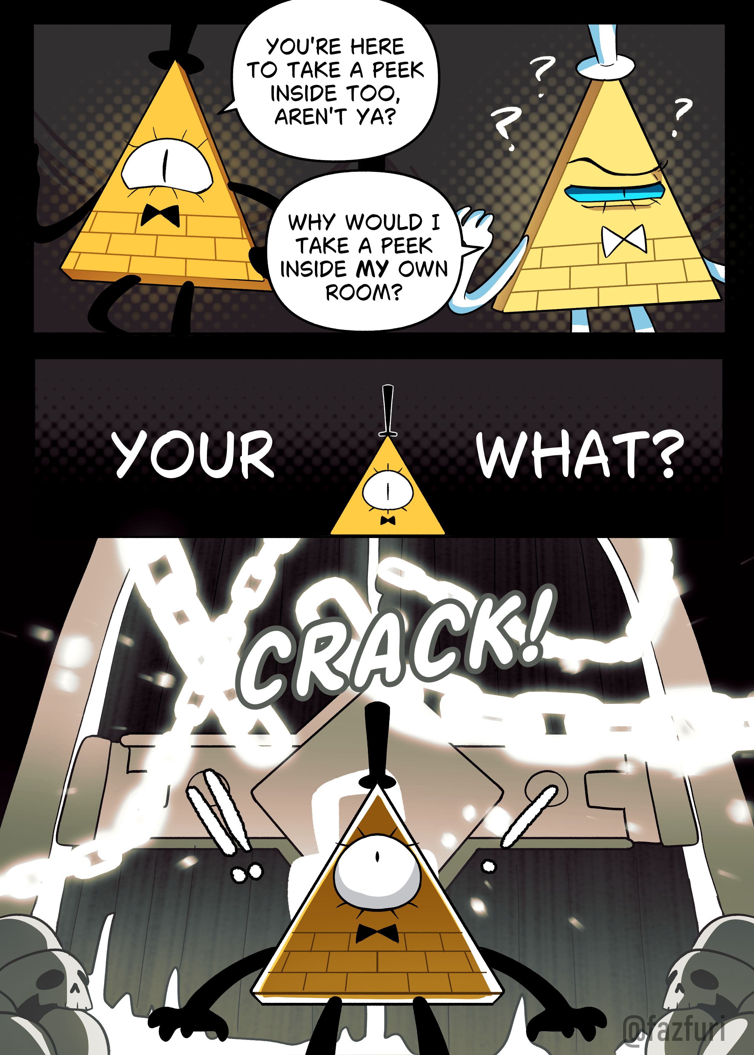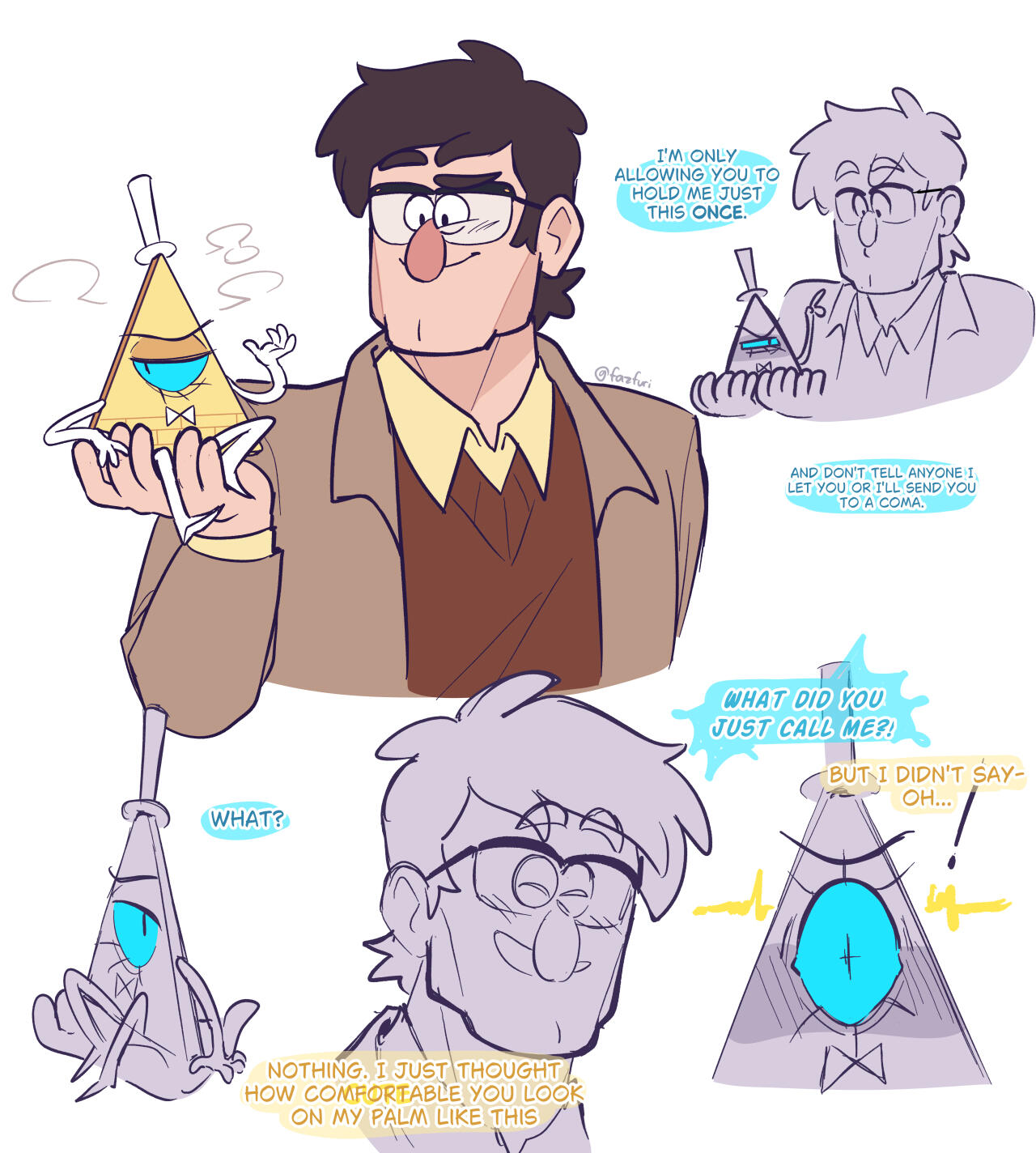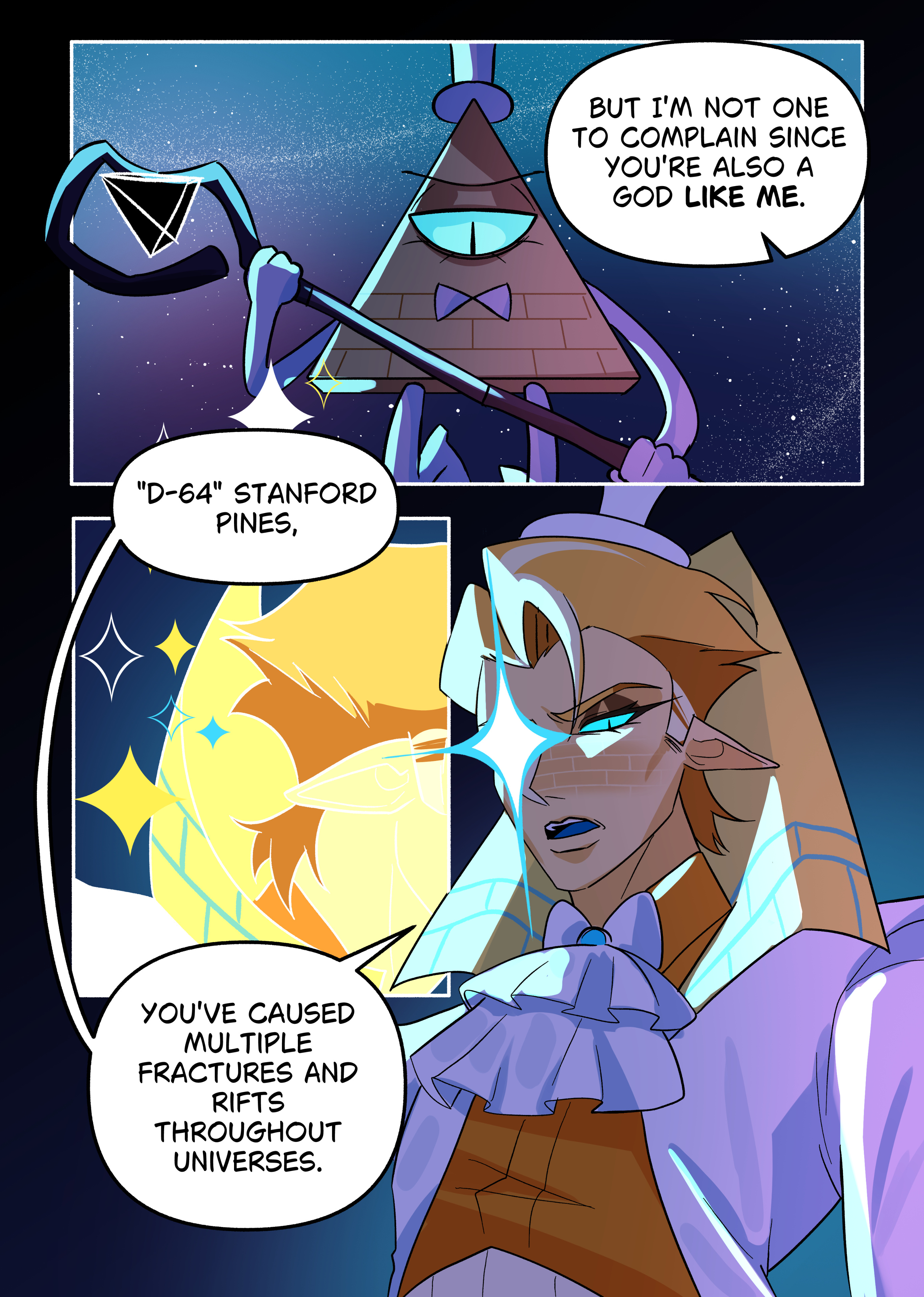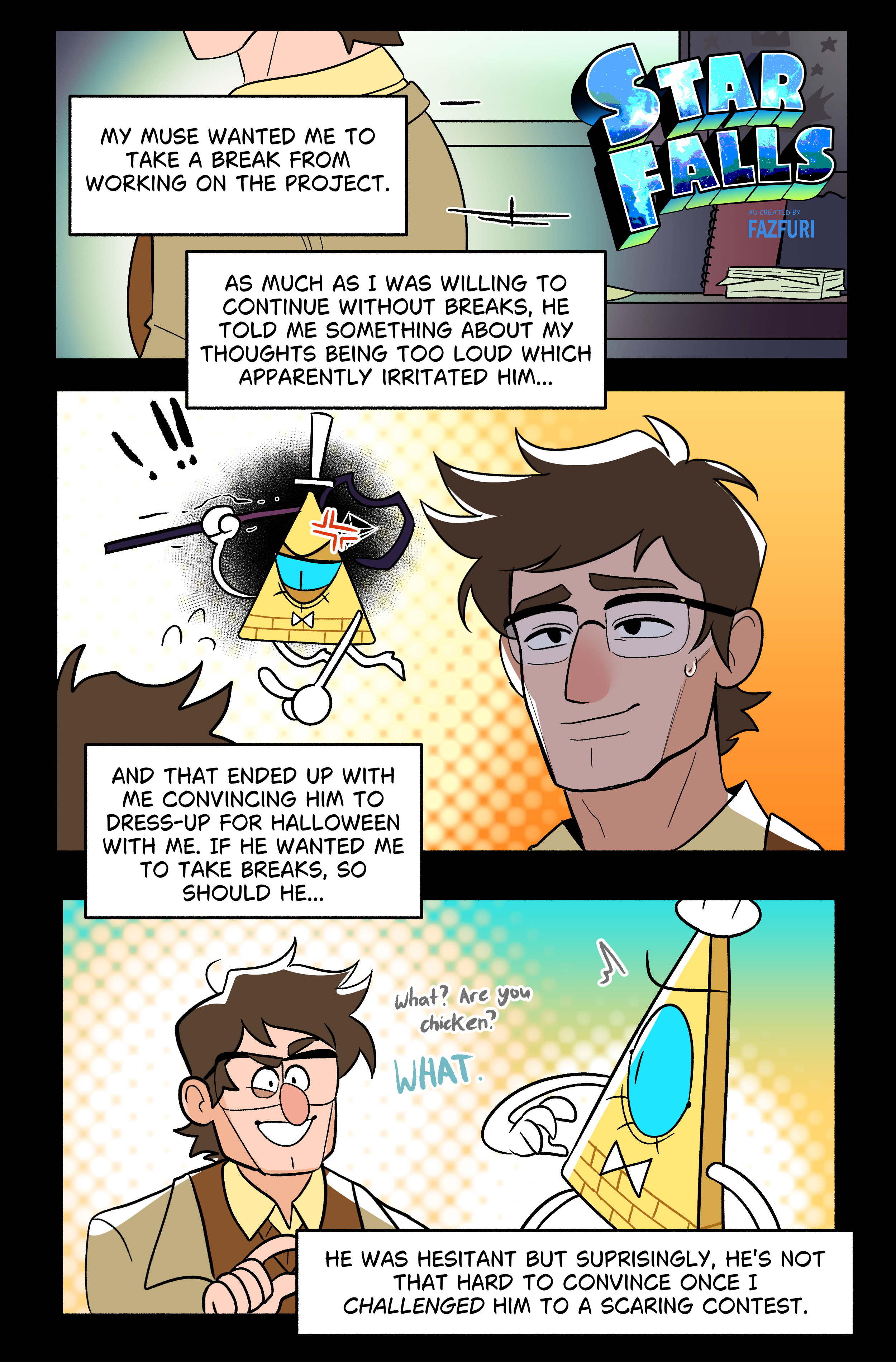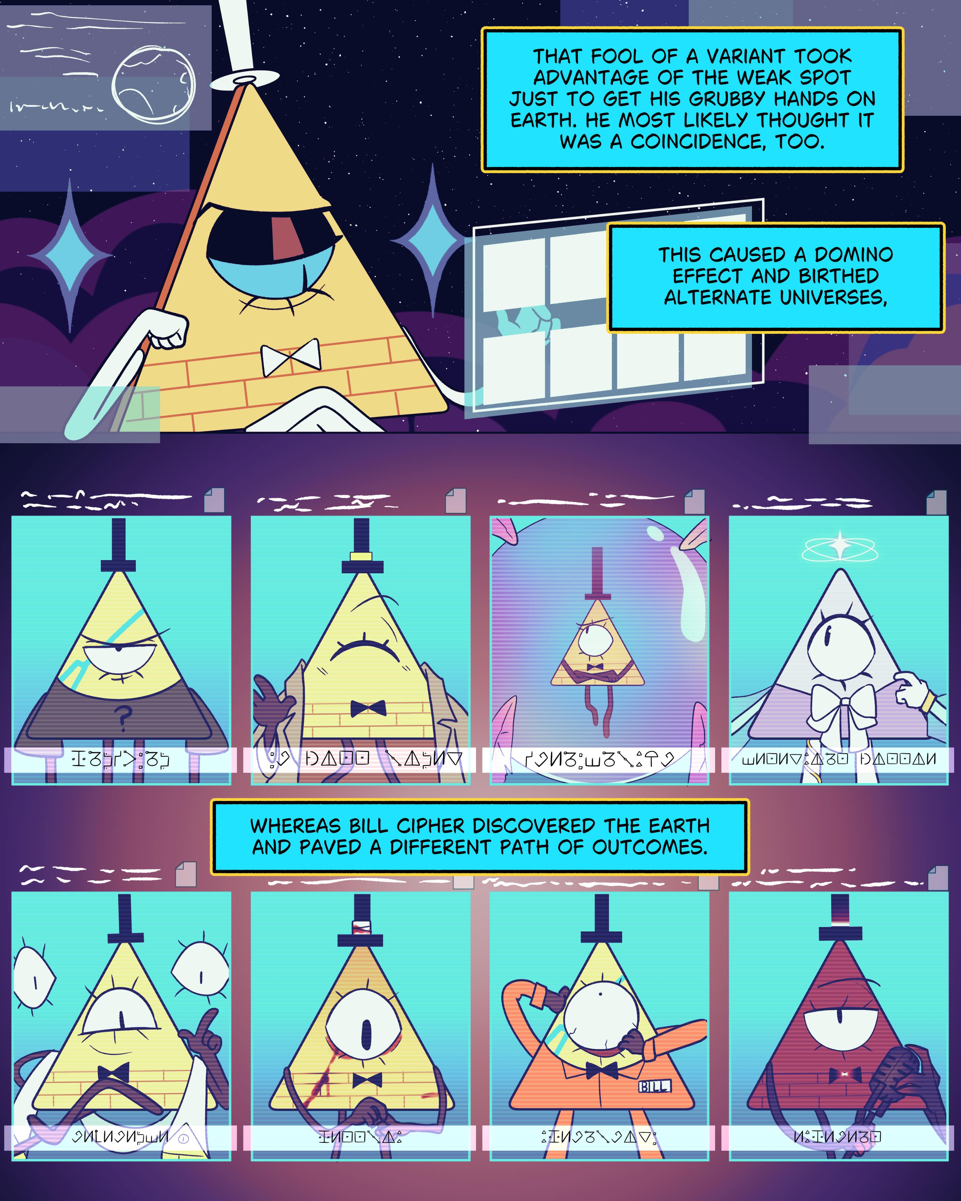 Star Falls is a Gravity Falls AU, also known as the "Deity" Bill Cipher AU. In parallel with the original Gravity Falls series, this one follows a similar narrative but with Bill Cipher playing the role of the "good guy" rather than the evil entity we knew. This AU draws a lot of inspiration from the Book of Bill, most especially from the chapters of Bill's history.