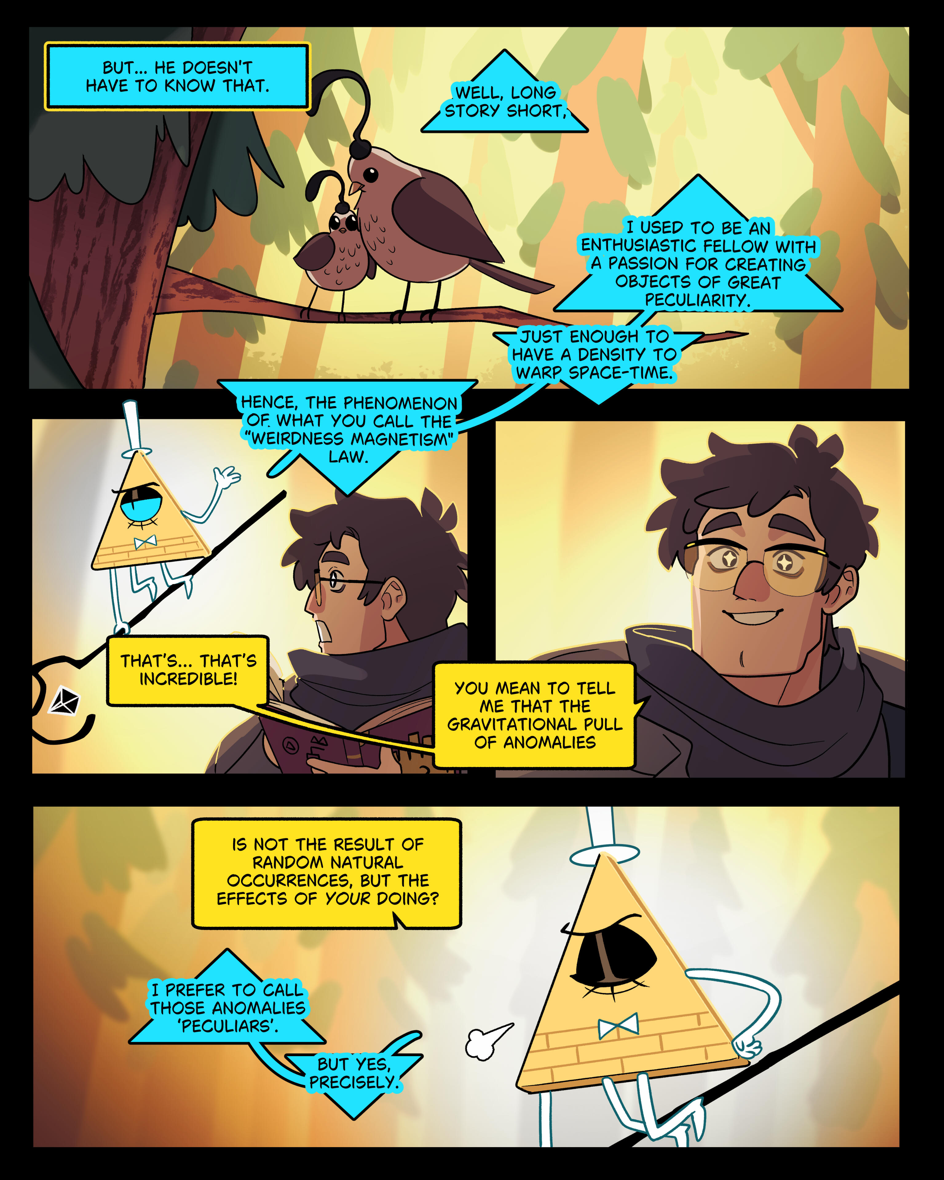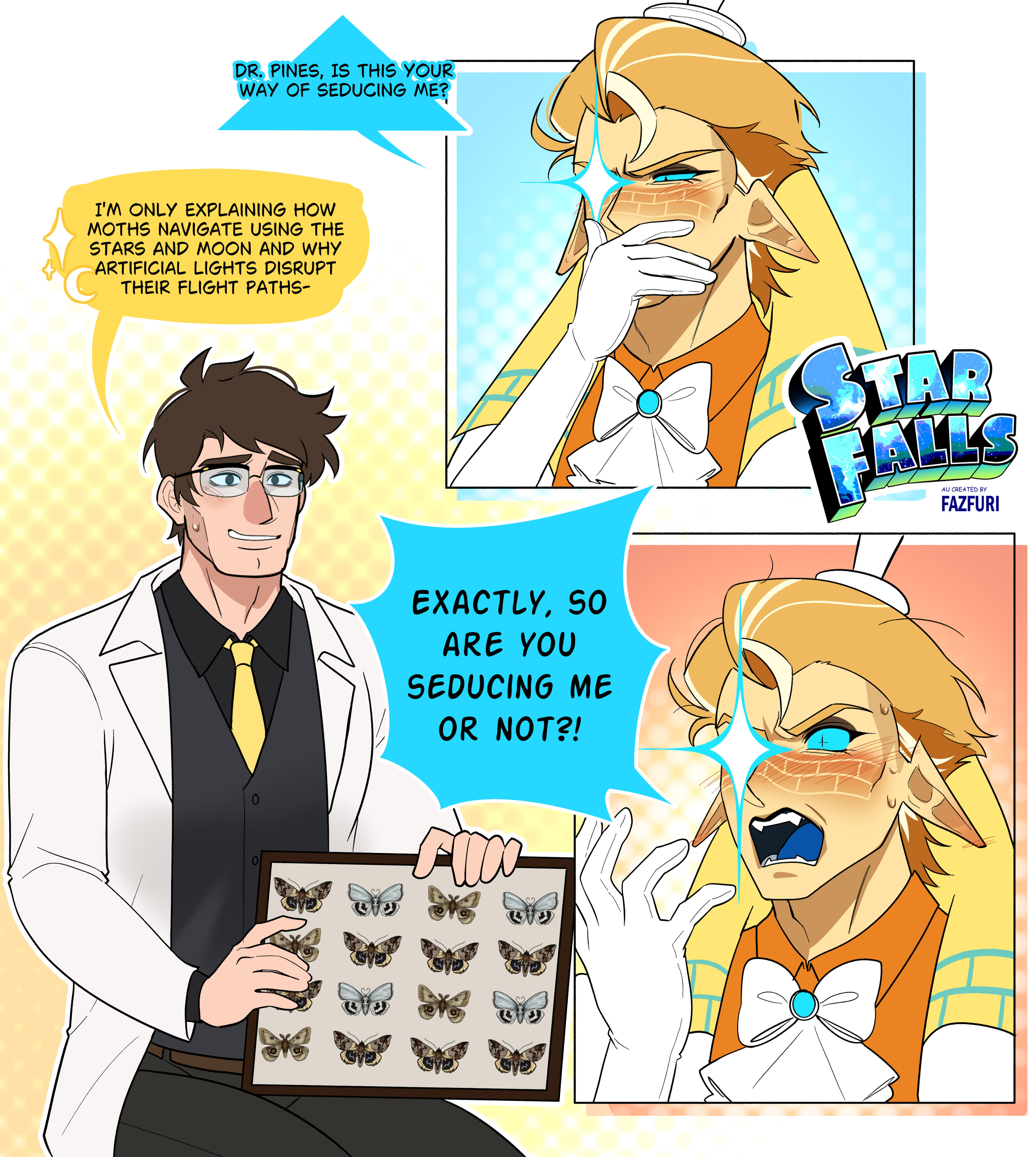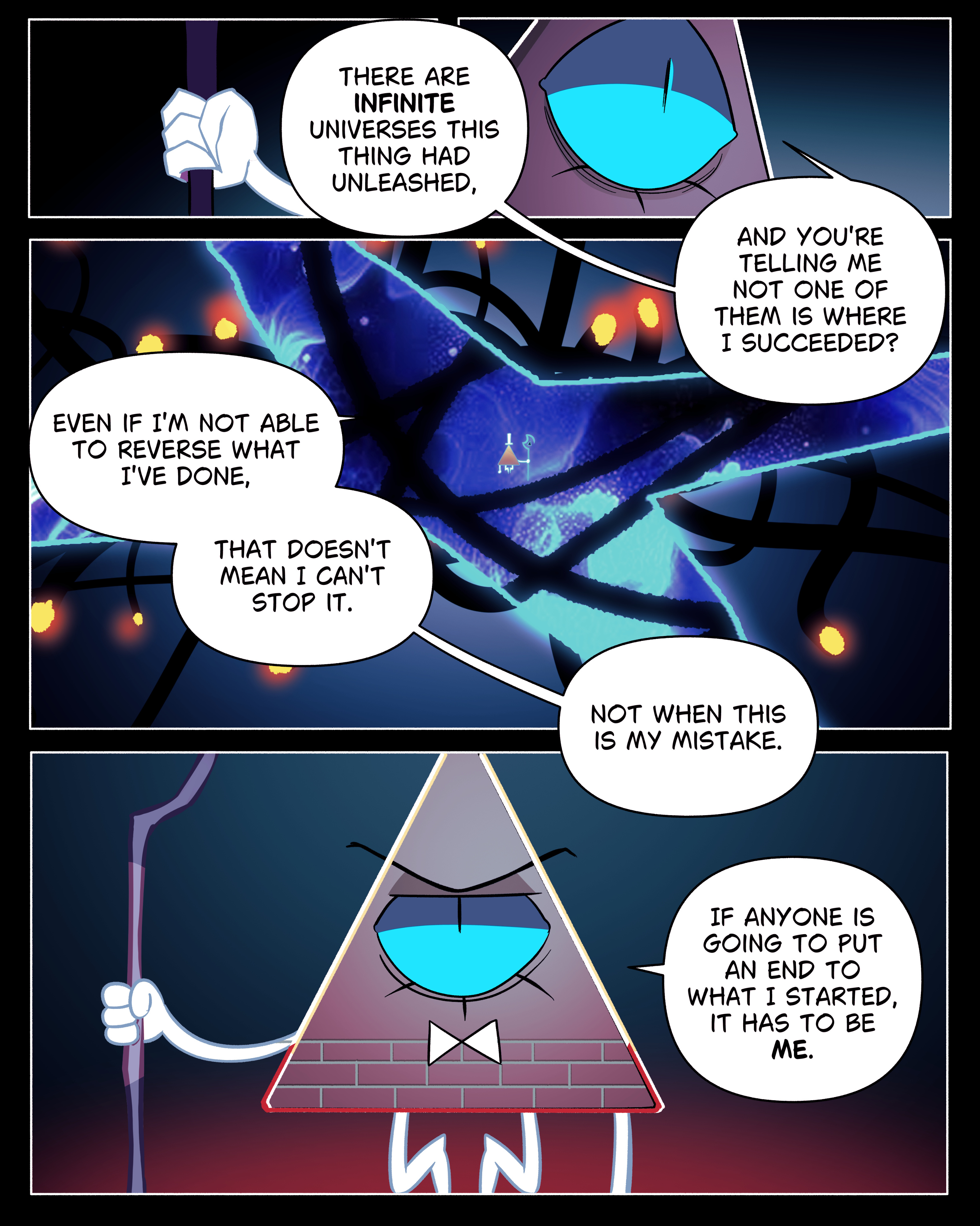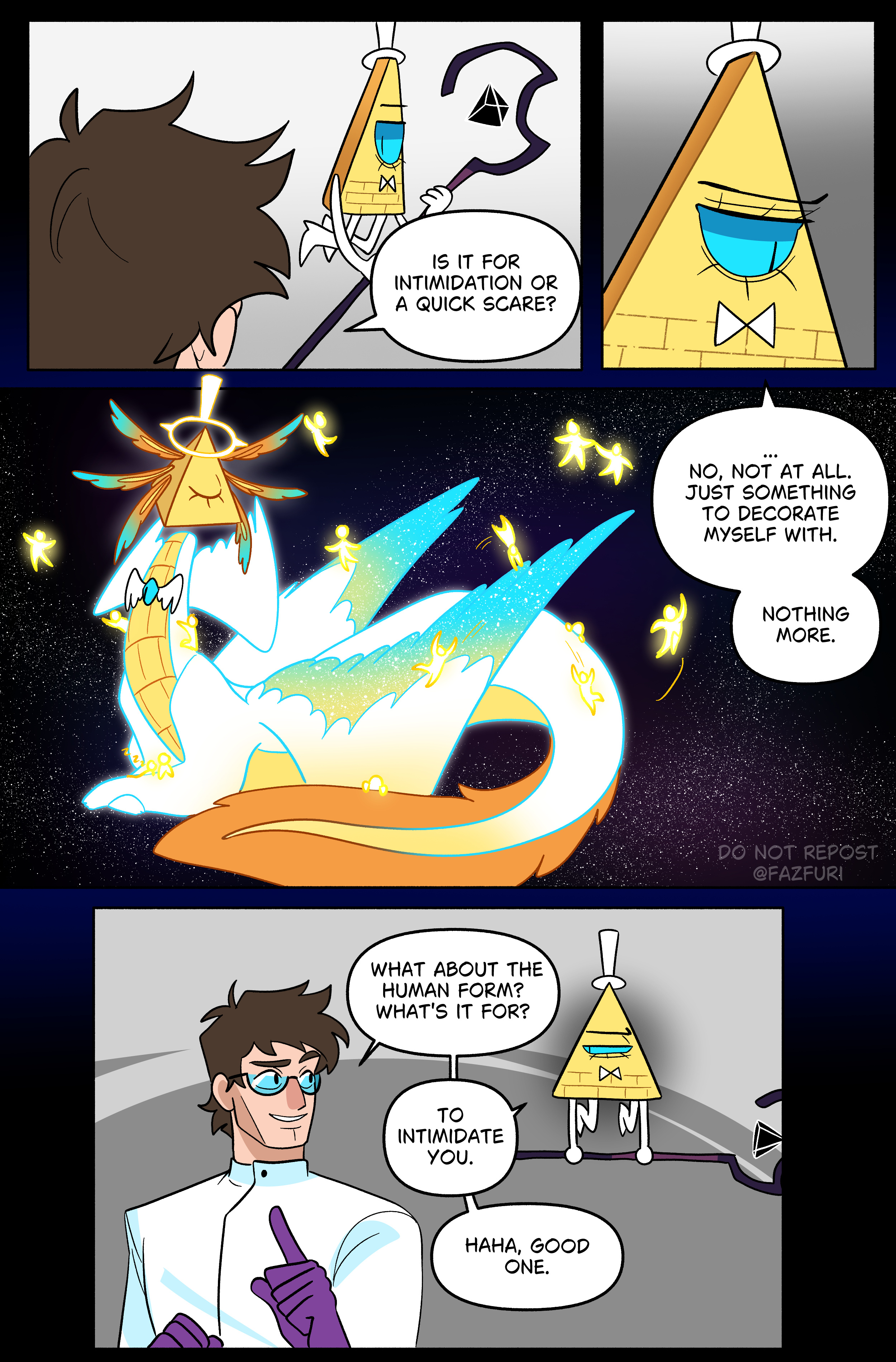 Star Falls is a Gravity Falls AU, also known as the "Deity" Bill Cipher AU. In parallel with the original Gravity Falls series, this one follows a similar narrative but with Bill Cipher playing the role of the "good guy" rather than the evil entity we knew. This AU draws a lot of inspiration from the Book of Bill, most especially from the chapters of Bill's history.