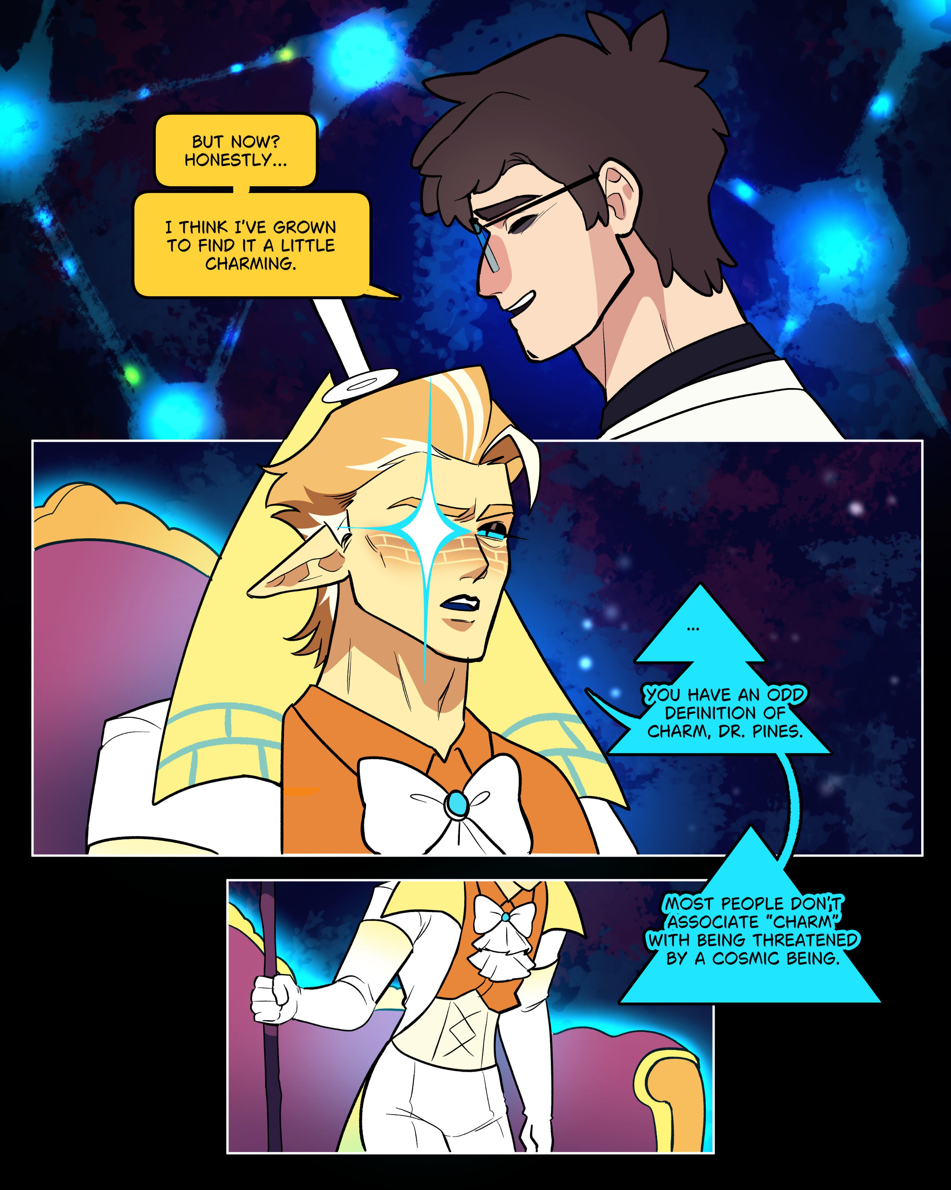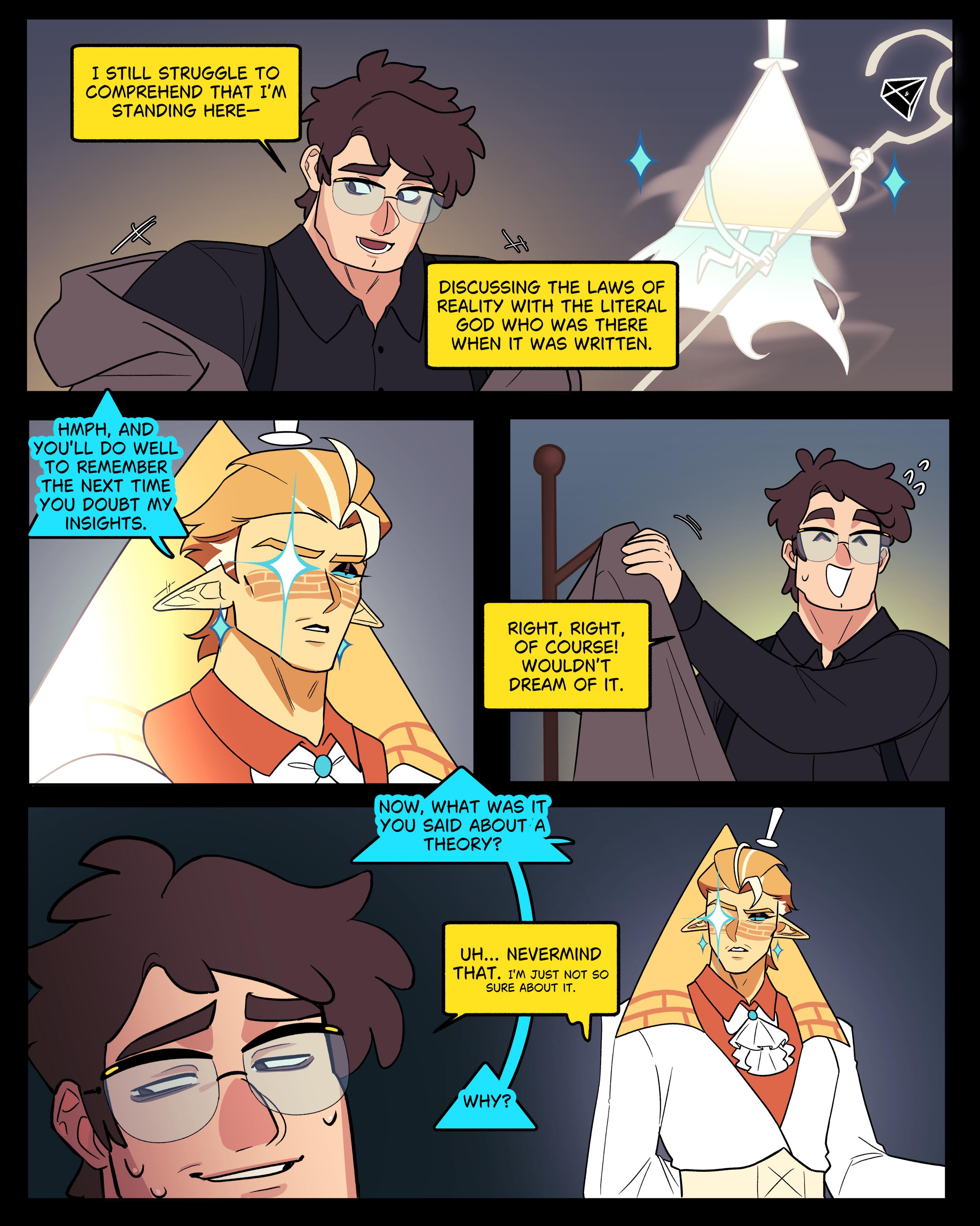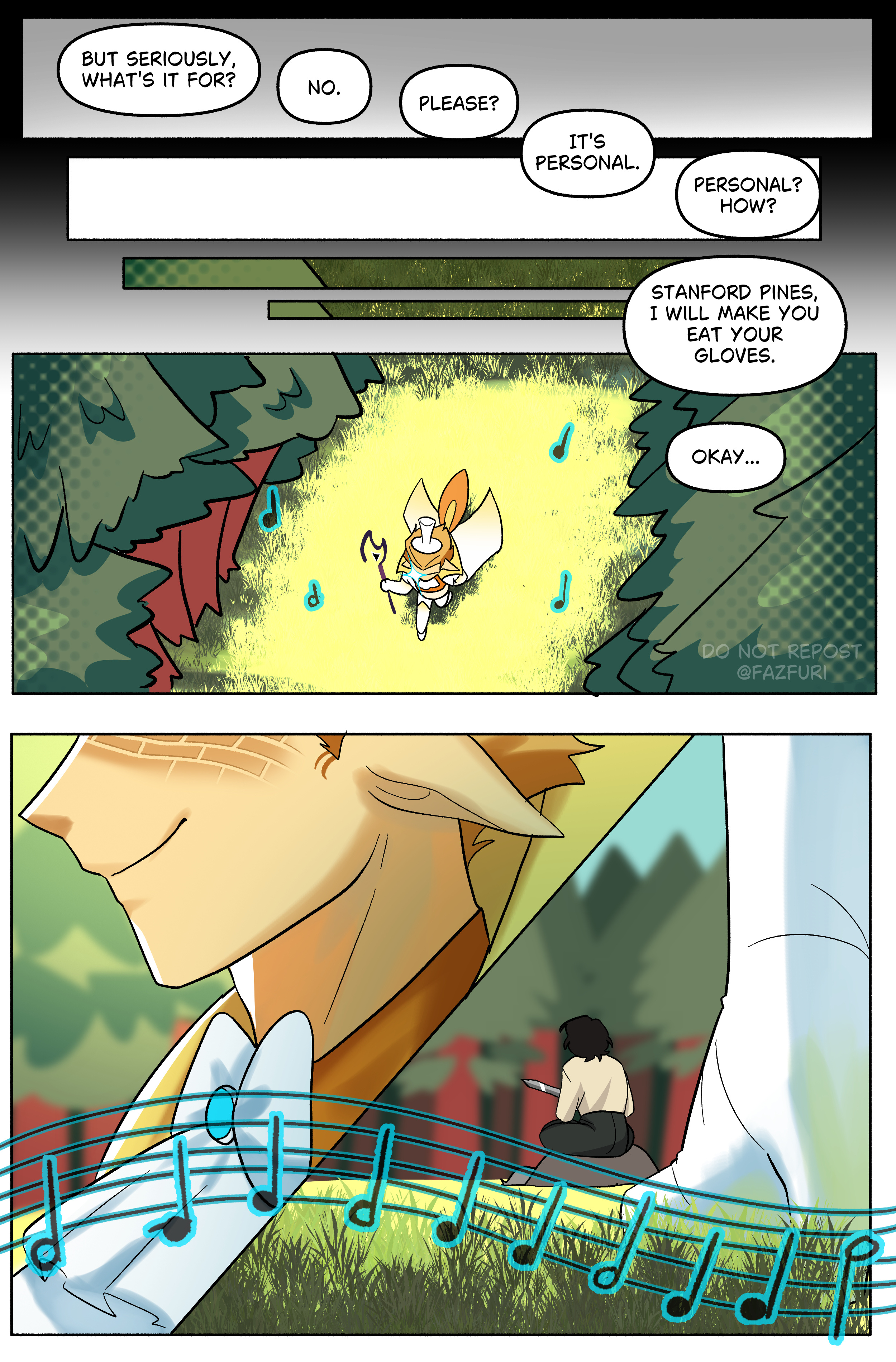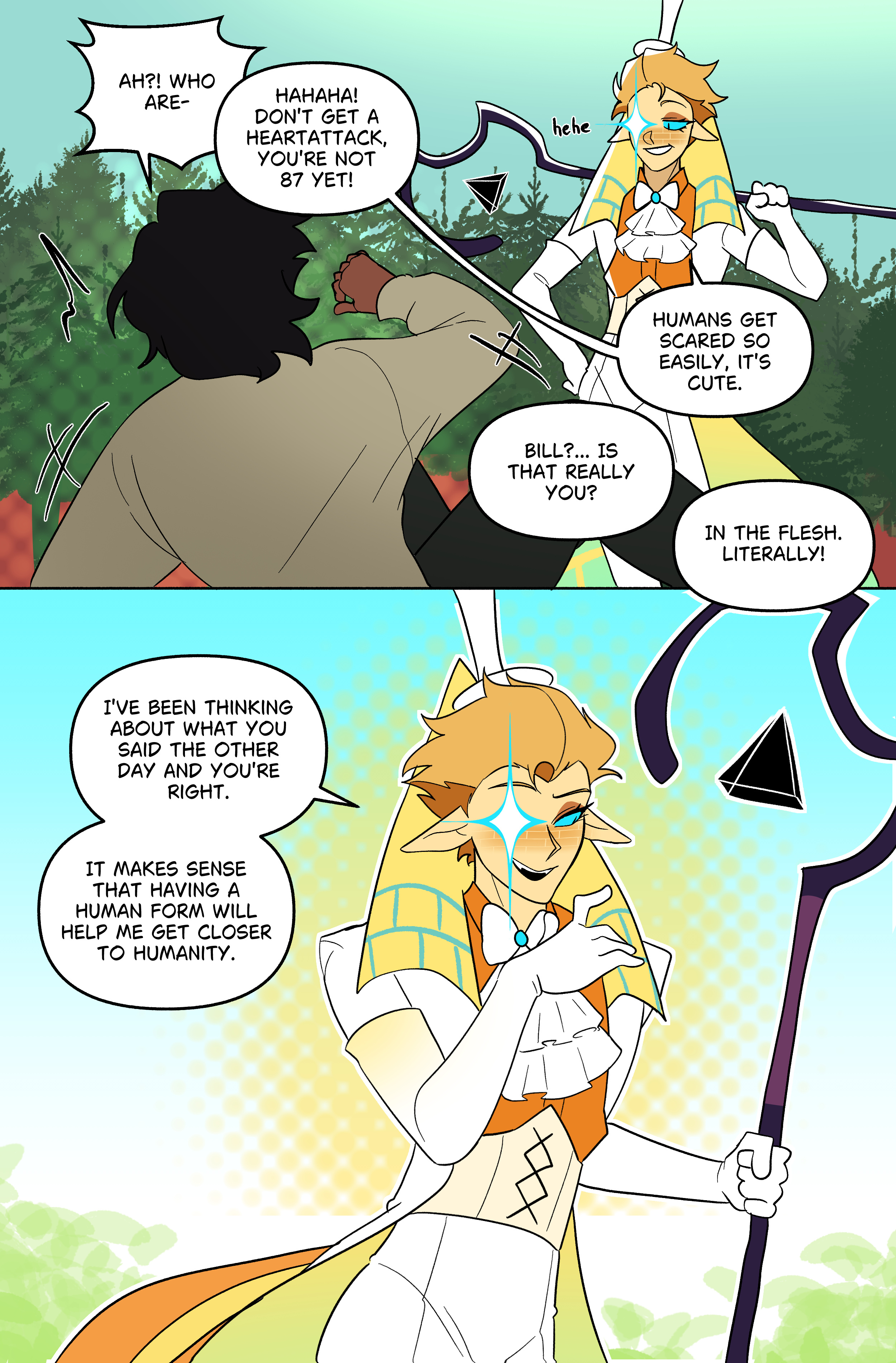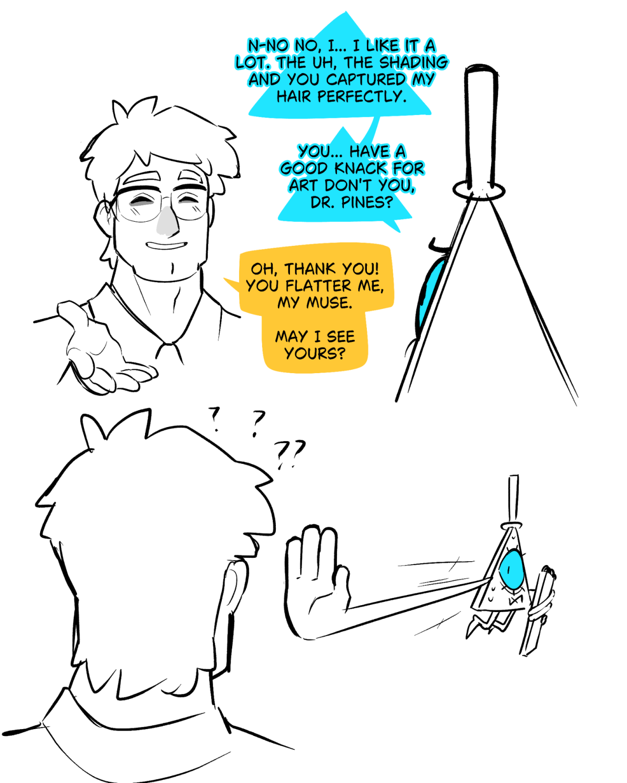 Star Falls is a Gravity Falls AU, also known as the "Deity" Bill Cipher AU. In parallel with the original Gravity Falls series, this one follows a similar narrative but with Bill Cipher playing the role of the "good guy" rather than the evil entity we knew. This AU draws a lot of inspiration from the Book of Bill, most especially from the chapters of Bill's history.